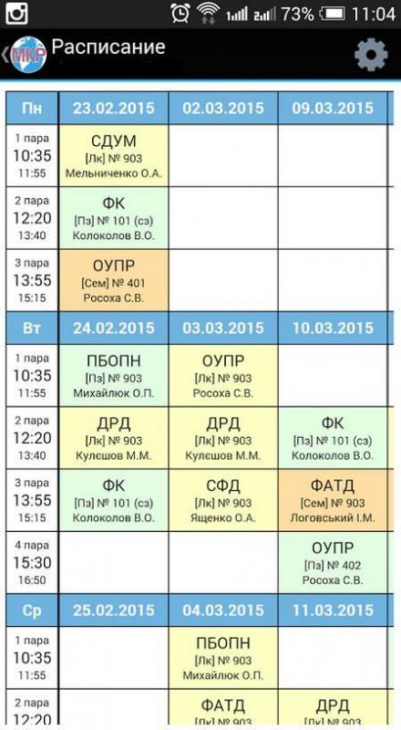Приложение позволяет отображать расписание академической группы или преподавателя, в том числе и off-line.